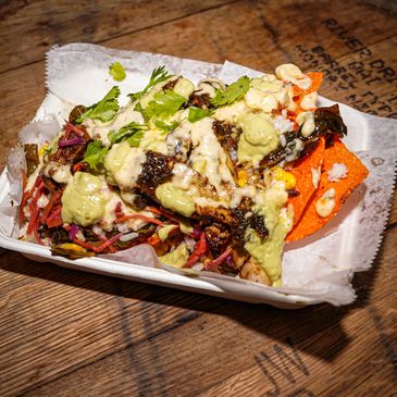 Tostadas, Queso, Salsa, Sour Cream, Black Beans